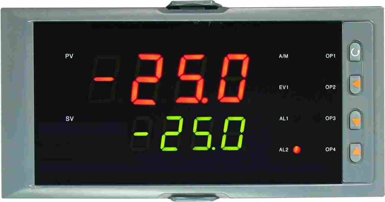 型号描述:横式160*80mm,外给定输入Pt100,反馈输入4-20mA,继电器正反转接点控制输出,变送输出4-20mA,2限报警,RS485通讯,AC100-240V供电。